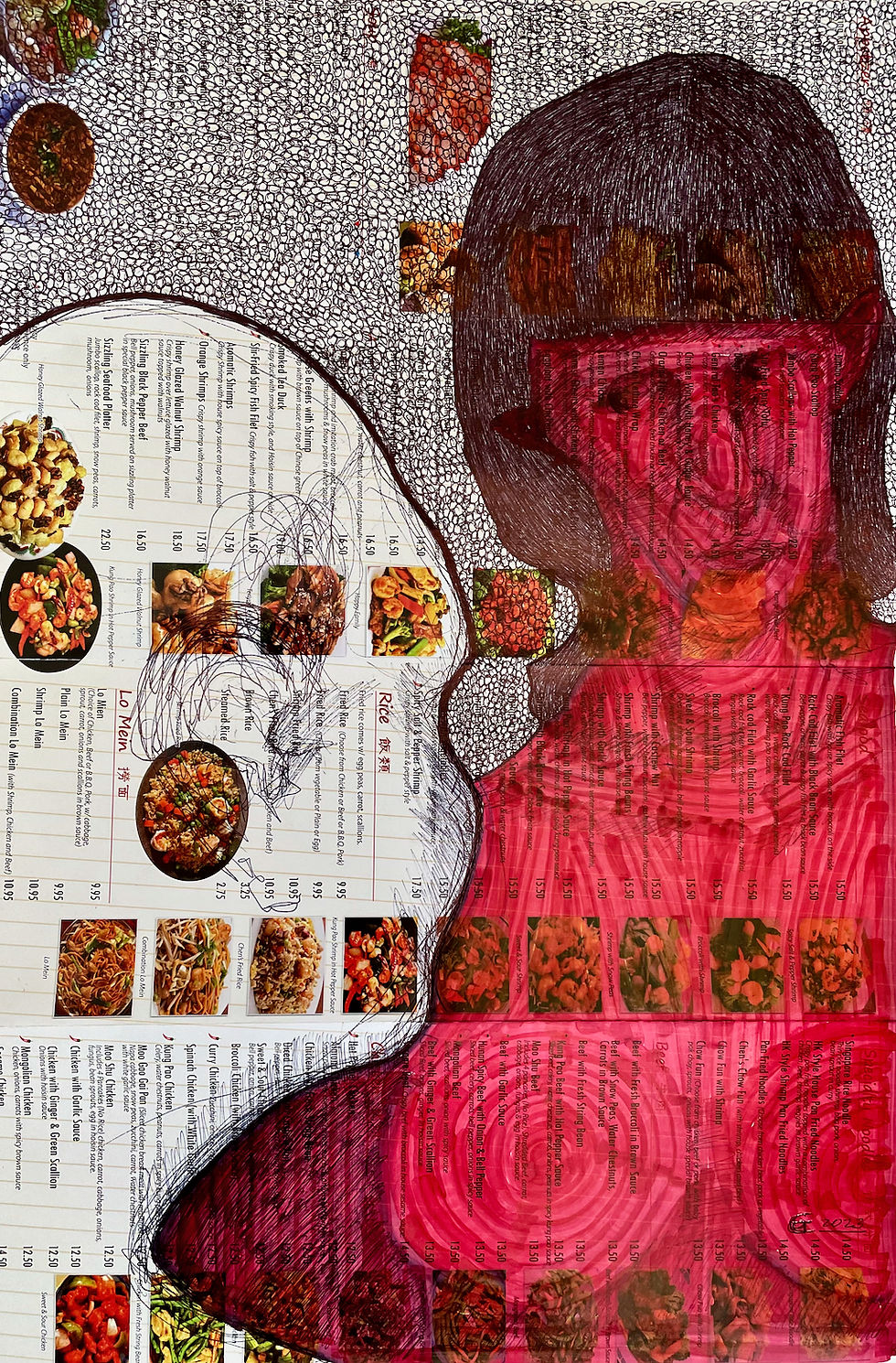 ballpoint pen & marker on menu