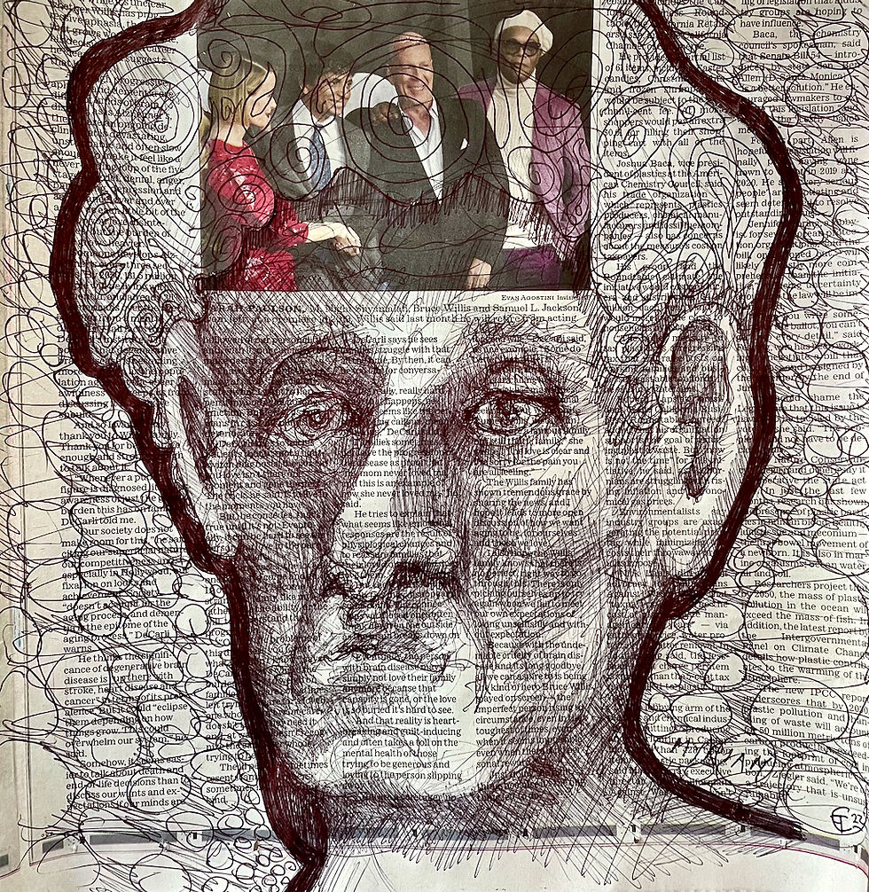 ballpoint pen & marker on newspaper